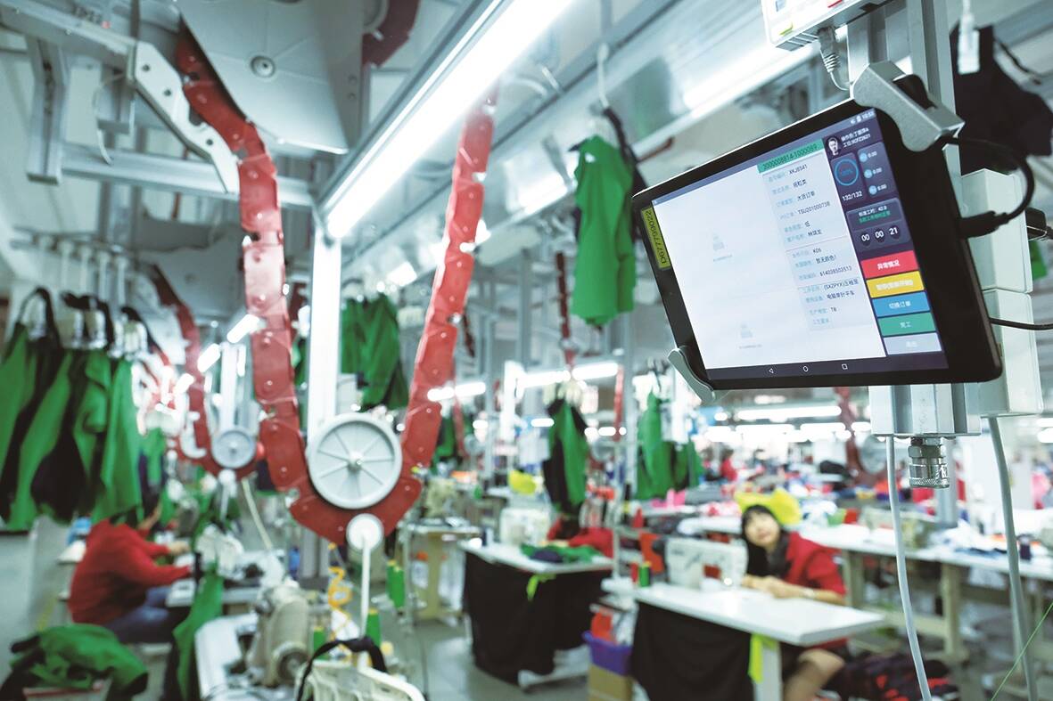 不仅如此,泉州鹏泰服饰有限公司还通过“X工厂”的智能制造升级,摆脱了传统的手工制单、手工排产生产模式,最大化地提高生产效率,缩短交付周期。从APS+MES+吊挂生产模块来看,效率提升了18%;从排产计划来看,计划不需要反复修改,工作量减少约60%;从交付周期来看,交付准交率由原来的75%提高到90%以上。