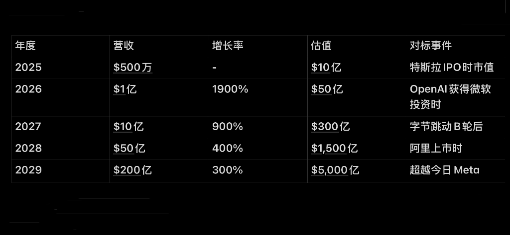 - 哪怕只吃掉1%的市场:$1万亿估值- 哪怕只收取0.1%的协议税:$100亿年收入- 这只是第一年目标