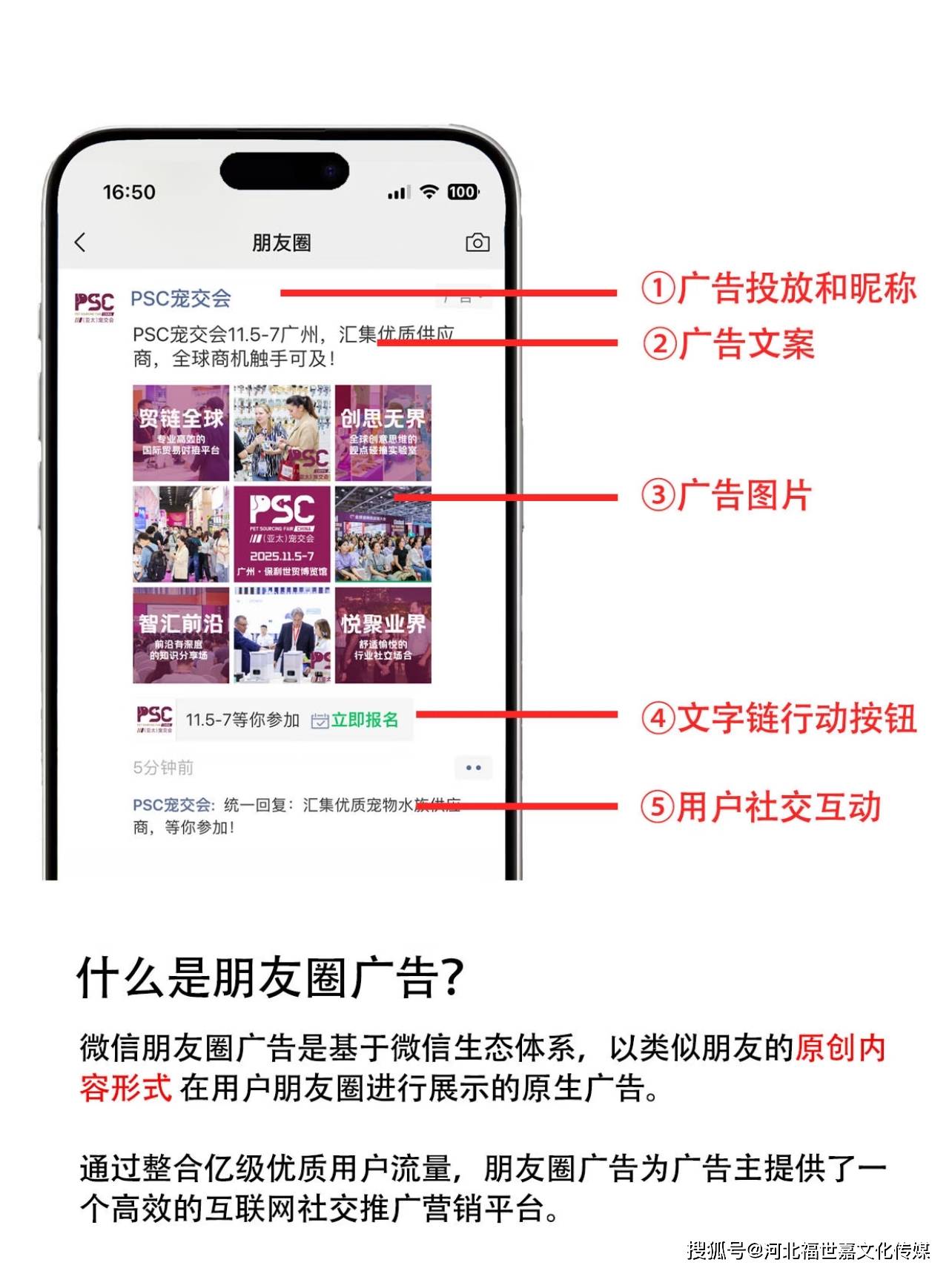 朋友圈广告是嵌入微信朋友圈信息流的官方推广内容,外观与普通朋友圈一致,仅标注 “广告” 字样,原生感强、用户接受度高。