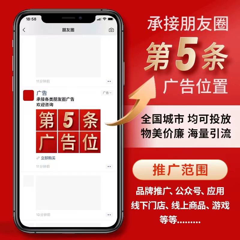 微信朋友圈广告是腾讯微信广告旗下核心版位,固定出现在朋友圈第五条信息流位置,右上角标注“广告”标识,由广告系统提交素材、审核通过后合规投放。