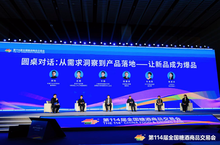 接下来的“从需求洞察到产品落地:让新品成为爆品”圆桌对话环节,中国工业合作协会副理事长刘旭携手资深产品专家、6家食品上市公司首席顾问王斌,中粮营养健康研究院消费者与市场研究中心主任卞祺,蚂蚁商业联盟董事长田建忠,乐尔乐商业连锁副总裁车海燕,九阳豆业联合创始人陈彦圻,一同展开深度探讨。