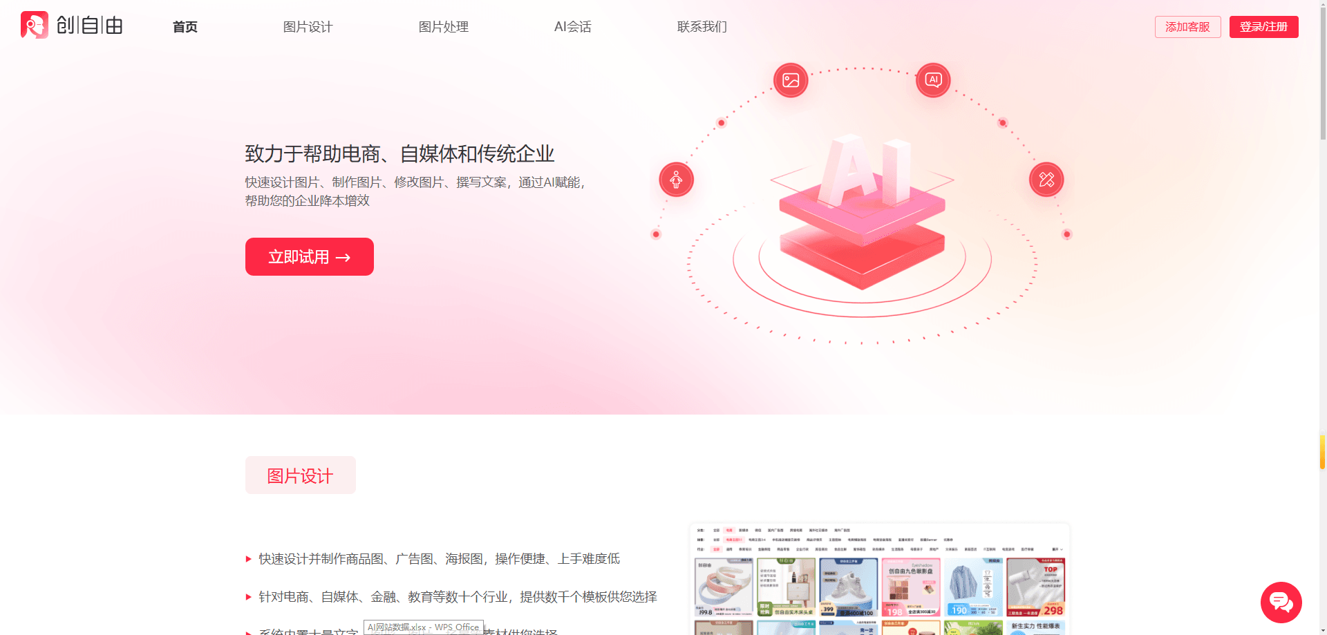 创自由是一款ai工具,依托ai技术,它可以帮助用户快速处理和设计图片,不管是横板、竖版广告还是电商主题,它都能满足。平台内具备大量模板,大家直接导入就能使用,上手很快,即使没有设计经验也完全不用担心,几分钟就能达到专业出图效果。