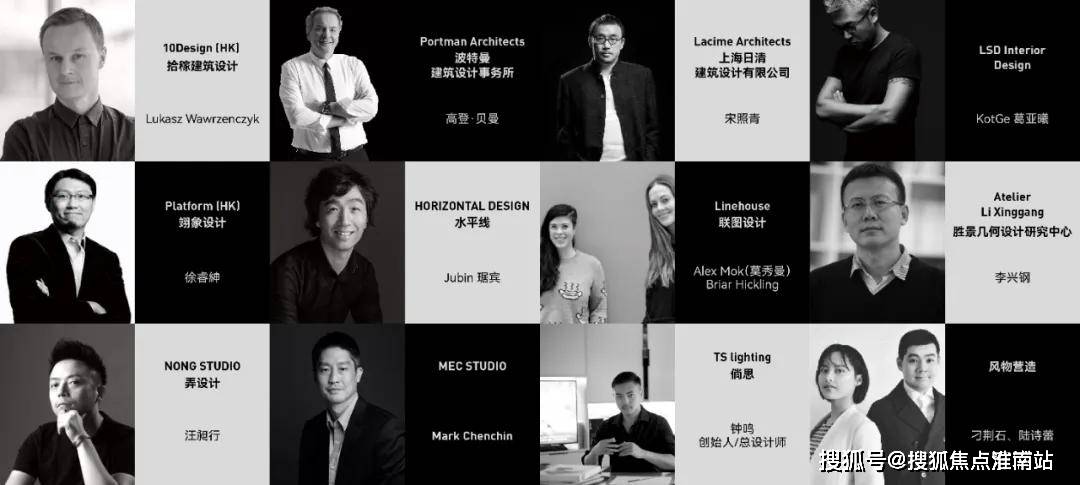 来自中国香港的先锋设计机构10Design和Platform,参与设计上海新天地的日清建筑设计公司,擅长室内空间设计的LSD Interior Design、水平线、Linehouse、NONG STUDIO以及设计外滩建筑群灯光照明的TS lighting等。
