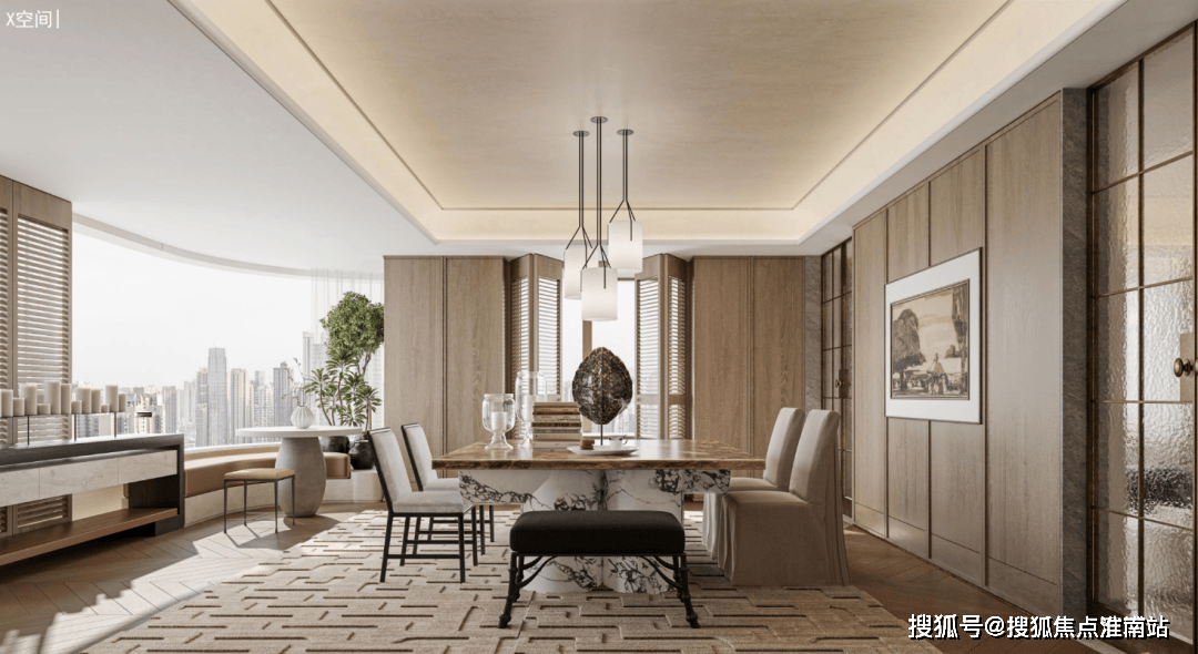 南向有个可改造的房间,尺度蛮大的,可以随家庭人口变化自由改造。如果家里暂时人比较少,可以改造成一个多功能会客室,连接客厅;如果家里成员多,可以改造成一个南向次套房。南向连通了一个270度的景观面。