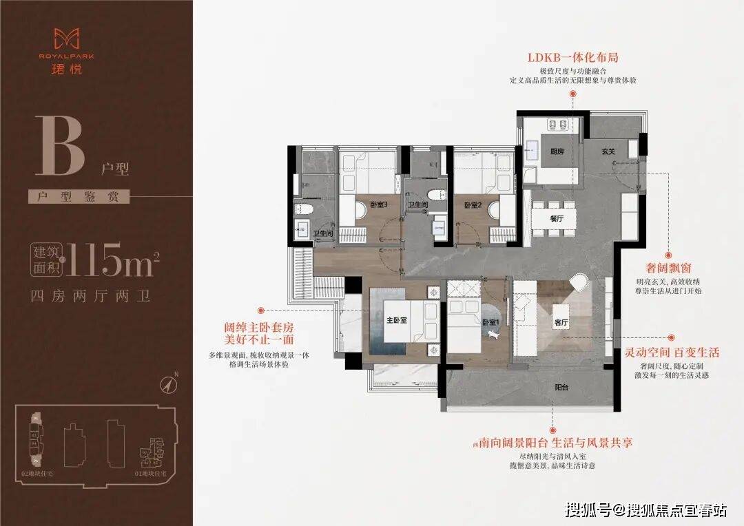 ◾115㎡四房创新打造约6.2米横厅,配以全景落地窗,主卧通过双面凸窗实现衣柜全赠送。A户型享有开阔城市视野,B户型则坐拥宁静社区景观,均采用双套房设计,确保家庭成员各自的私密空间。