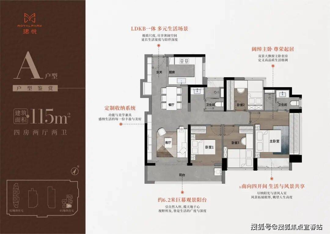 【匠心户型:奢适空间的精妙演绎】项目精心打造89㎡三房与115㎡四房两大主力户型,通过创新空间设计实现77%的基础使用率,经凸窗与阳台改造后最高可达95%。